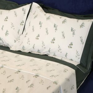 La parure de draps Bloomé en coton haut de gamme associe confort, douceur et motif fleuri élégant, avec taies assorties.